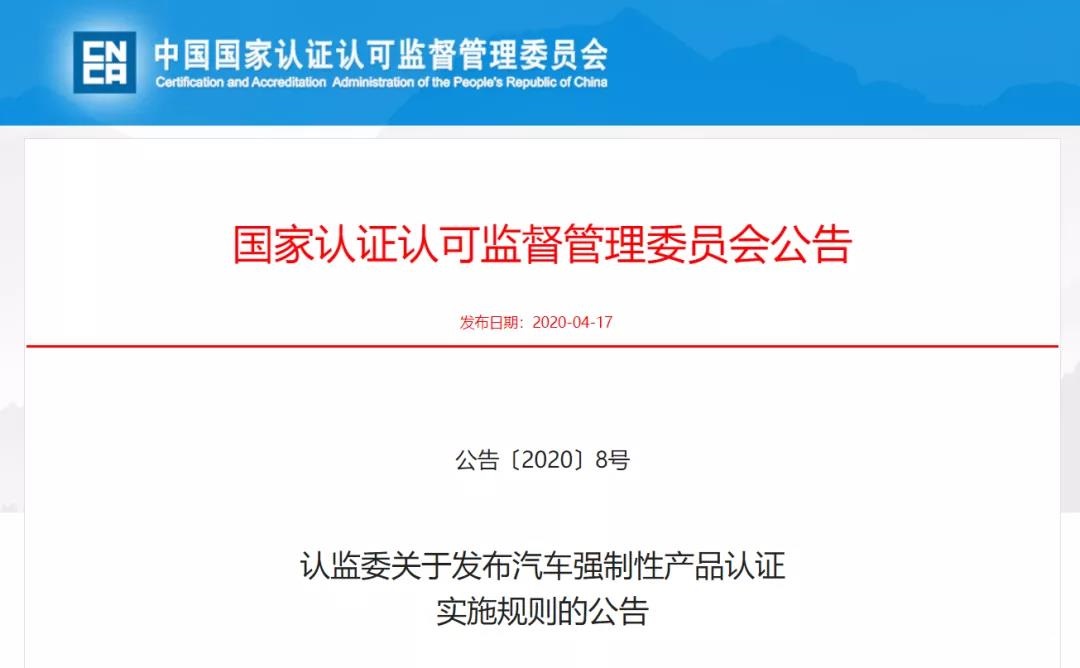 修訂發布《強制性產品認證實施規則 汽車》(編號:CNCA-C11-01:2020,以下簡稱新版實施規則),進一步完善認證制度設計,簡化申報要求,優化實施程序,豐富評價方式,提高汽車CCC認證實施便利化程度。